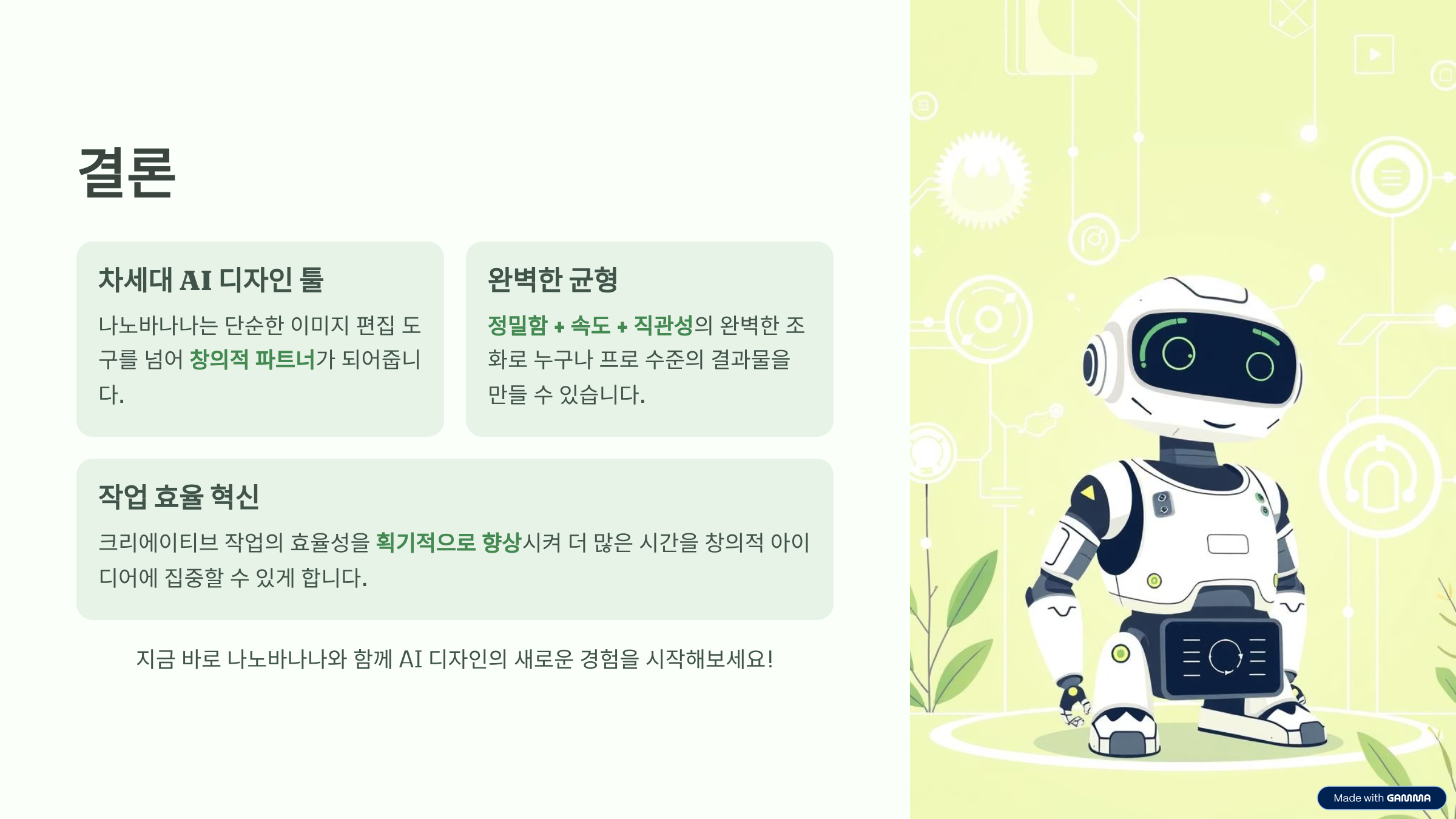 👉 결론적으로, 나노바나나는 AI 이미지 편집과 생성의 새로운 기준을 제시하는 혁신적인 모델이라 평가할 수 있습니다.